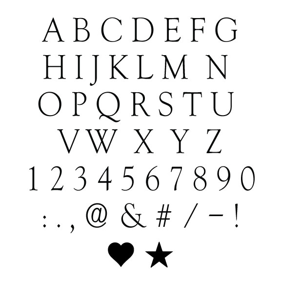 - Symbols: ‘:’, ‘.’, ‘,’, ‘@’, ‘&’, ‘#’, ‘/’, ‘–’, ‘!’, Heart, Star